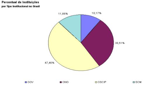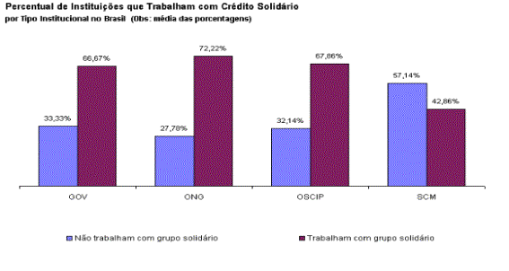 Percentual de instituições que trabalham com crédito solidário por tipo institucional no Brasil |