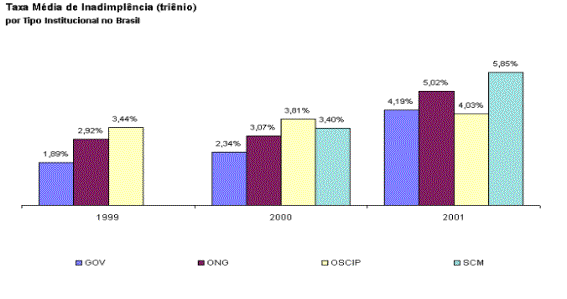 Taxa média de inadimplência por tipo institucional no Brasil |