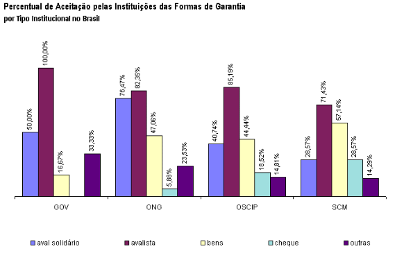 Percentual de aceitação pelas instituições das formas de garantia por tipo institucional no Brasil |